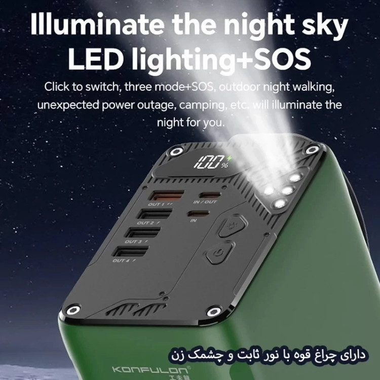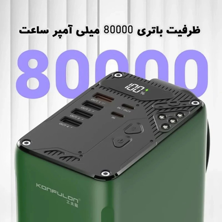 پاوربانک 80000 میلی آمپر کانفلون مدل A49Q ظرفیت با شارژ سریع 30 وات konfulon power bank